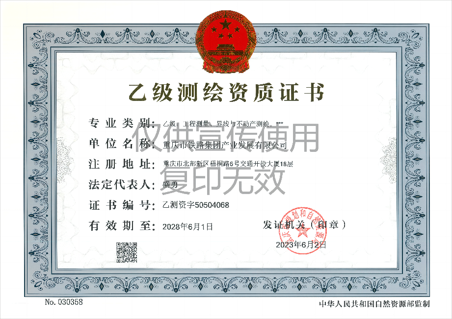 近日,市鐵路集團(tuán)產(chǎn)業(yè)公司成功取得由重慶市規(guī)劃和自然資源局頒發(fā)的,工程測(cè)量、界線與不動(dòng)產(chǎn)測(cè)繪專業(yè)“乙級(jí)測(cè)繪資質(zhì)”證書。