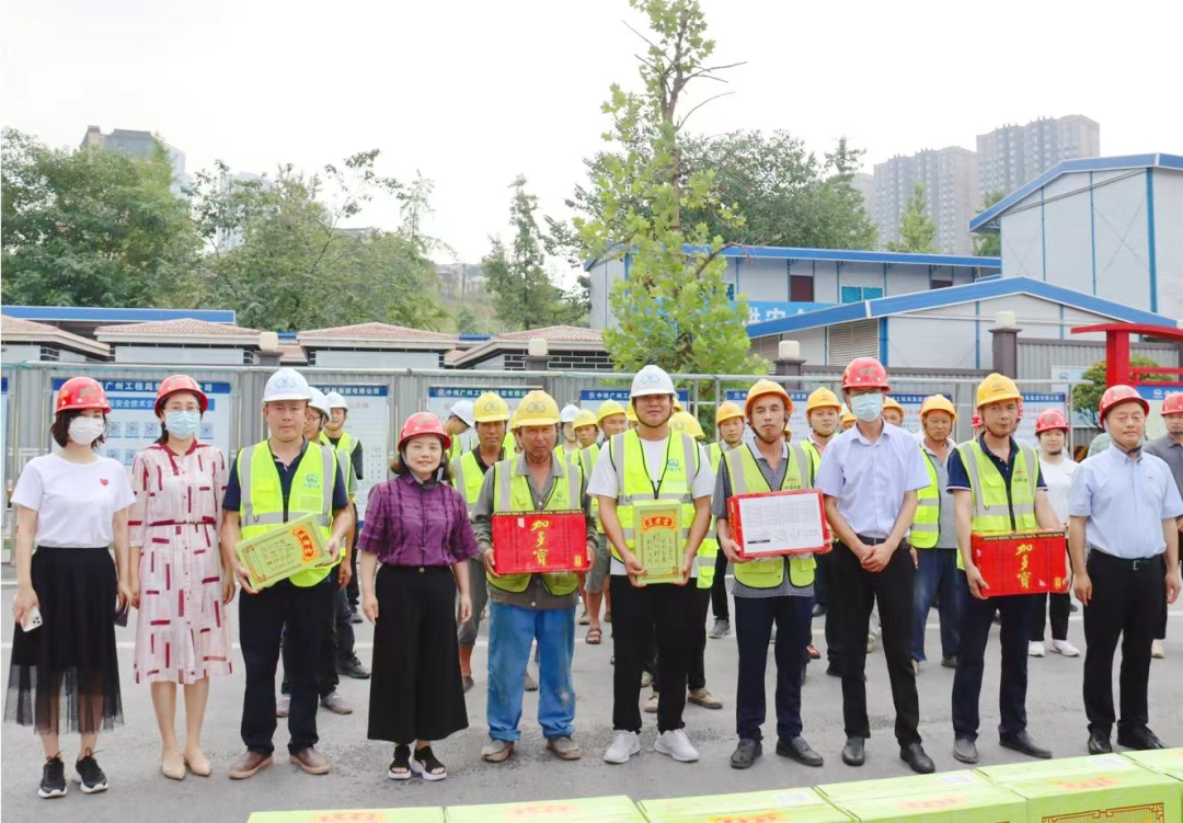 在15號(hào)線九曲河?xùn)|站施工現(xiàn)場(chǎng),周俊勇對(duì)高溫期間堅(jiān)守崗位的工作人員表示感謝,并叮囑大家做好個(gè)人防護(hù),注意勞逸結(jié)合,以自身安全保障項(xiàng)目安全。隨后,周俊勇、陳靜、何明成將防暑清涼慰問品送到現(xiàn)場(chǎng)一線建設(shè)人員手中。