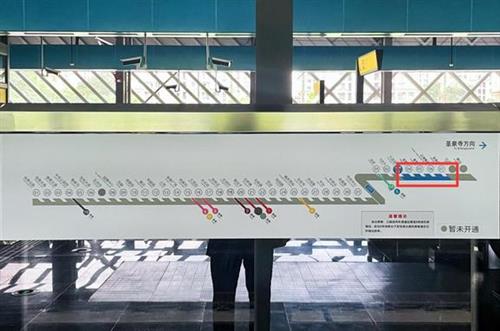 在等車的間隙也可以再仔細(xì)看看站臺(tái)門上的線路圖,灰色代表列車已經(jīng)經(jīng)過(guò)的區(qū)段,藍(lán)色代表未到達(dá)的區(qū)段(也就是列車行駛的方向)。