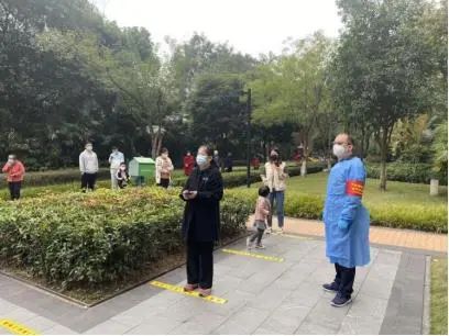 7時(shí)許,尹鵬飛熟練穿好防護(hù)服,戴好口罩和手套,開始仔細(xì)消毒。一身行頭齊備后,他正式開始了上午的工作:在小區(qū)內(nèi)布置檢測(cè)點(diǎn)位、確定安全距離、安排志愿者、維持現(xiàn)場(chǎng)秩序;在疫情監(jiān)測(cè)卡點(diǎn),勸返出入?yún)^(qū)人員,對(duì)確需入?yún)^(qū)的人員告知“人員只進(jìn)不出的”管控措施,同時(shí)做好詢問(wèn)來(lái)去、記錄時(shí)間、測(cè)量體溫等各項(xiàng)信息登記;一遍又一遍地給居民重復(fù)著“保持一米距離”“做完核酸不要逗留馬上回家”的提醒……他的動(dòng)作有條不紊、回答耐心細(xì)致。一整套流程下來(lái),已是下午2點(diǎn)。