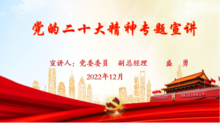 會(huì)上,盛勇同志以《學(xué)習(xí)二十大·書寫新篇章》為題講授黨課,重點(diǎn)宣講了黨的二十大的重大意義、二十大報(bào)告的邏輯結(jié)構(gòu)與主要精神,并結(jié)合支部實(shí)際工作,提出三點(diǎn)要求:一是要深刻領(lǐng)會(huì)準(zhǔn)確把握黨的二十大精神實(shí)質(zhì),準(zhǔn)確把握黨的二十大提出的一系列新觀點(diǎn)、新論斷、新思想、新戰(zhàn)略、新要求,堅(jiān)定不移地沿著習(xí)近平總書記指引的方向奮勇前進(jìn),真正做到學(xué)深悟透。二是要深入學(xué)習(xí)貫徹黨的二十大精神,從全面學(xué)習(xí)、全面把握、全面落實(shí)上下功夫,要對(duì)各項(xiàng)目標(biāo)和任務(wù)進(jìn)行細(xì)化,有針對(duì)性地拿出落實(shí)的具體方案,制定明確的時(shí)間表、施工圖,扎扎實(shí)實(shí)向前推進(jìn)。三是要把黨的二十大戰(zhàn)略部署轉(zhuǎn)化為集團(tuán)、部門的工作任務(wù),抓好歲末年初沖刺攻堅(jiān),謀劃好明年的各項(xiàng)工作,做到既為一域增光、又為全局添彩。