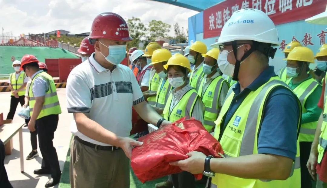 在現(xiàn)場(chǎng),羅江陵將藿香正氣液等慰問品遞給一線勞動(dòng)者,感謝他們?yōu)轫?xiàng)目建設(shè)所作出的貢獻(xiàn),并親切叮囑他們要注意防暑降溫,勞逸結(jié)合,安全施工。