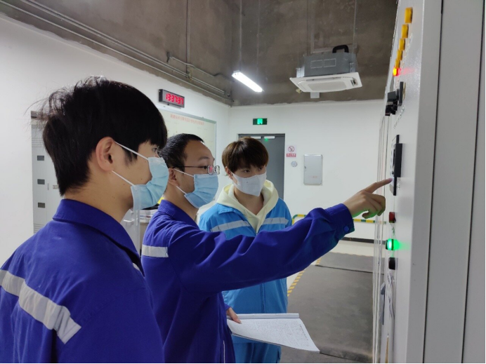 江跳線運營公司維保事業(yè)部變電專業(yè)員工、團(tuán)員青年嚴(yán)浩 、龍騰、李靖平堅守崗位,確保生產(chǎn)不停歇
